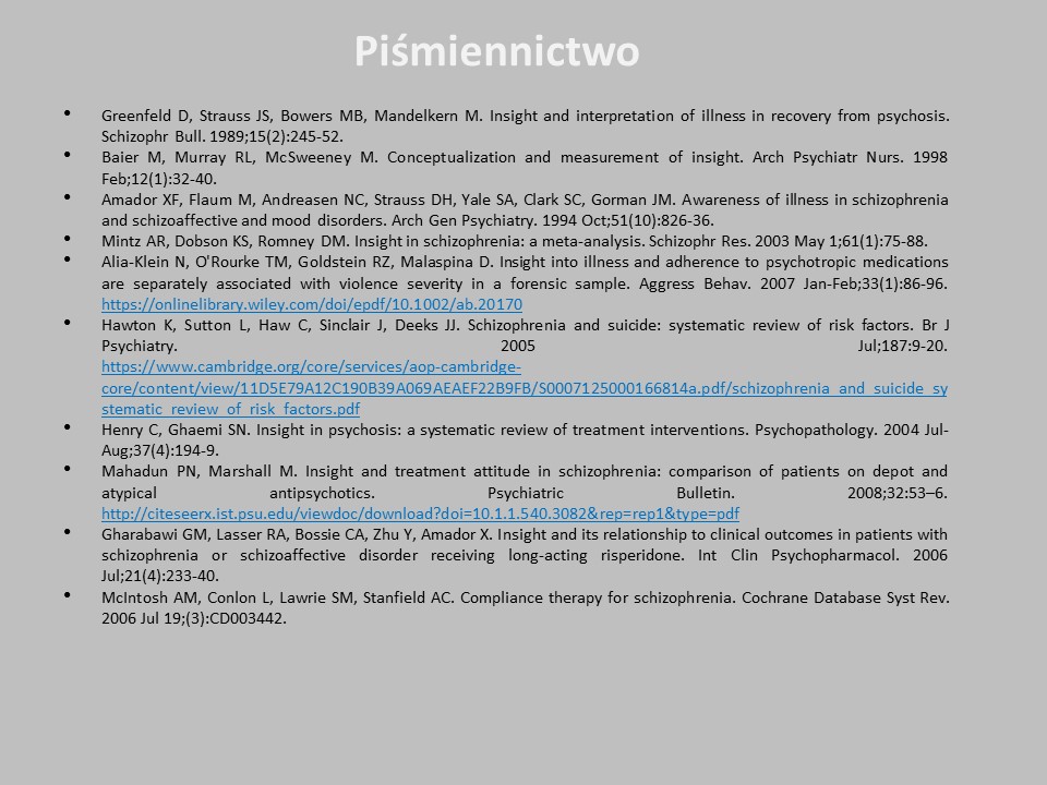 Wgląd chorobowy i współpraca z pacjentem z zaburzeniami psychotycznymi